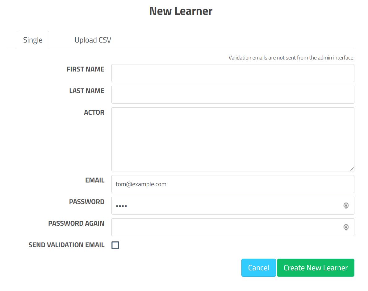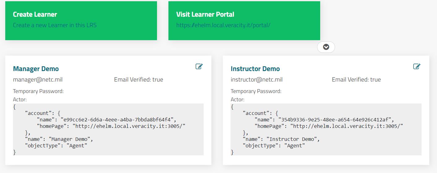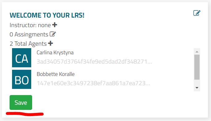 An Agent is an account that exists within each LRS. They allow you to create credentials for a person to log into your LRS's Learner Portal. Here, they can view content you've listed for them, self-assert performance data, or review their own data.