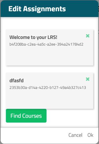 You can click on "Find Courses" to find Activities from this LRS. Click on the Course card to add it to the assignment list.