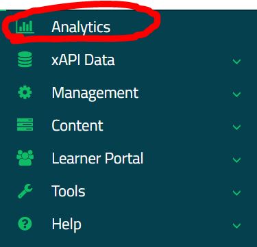 Start by loading the analytics page for your LRS. Do this by clicking the "Analytics" button on the left side menu.